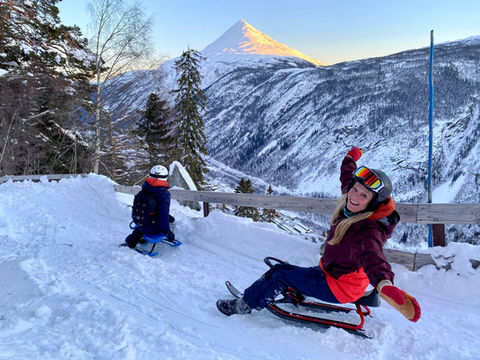 Utsikten er som T.H. Kittelsens «Soria Moria» og sherpaene fra Nepal har laget trappetrinnene i Solstien som lett får deg helt opp til 1100 moh.